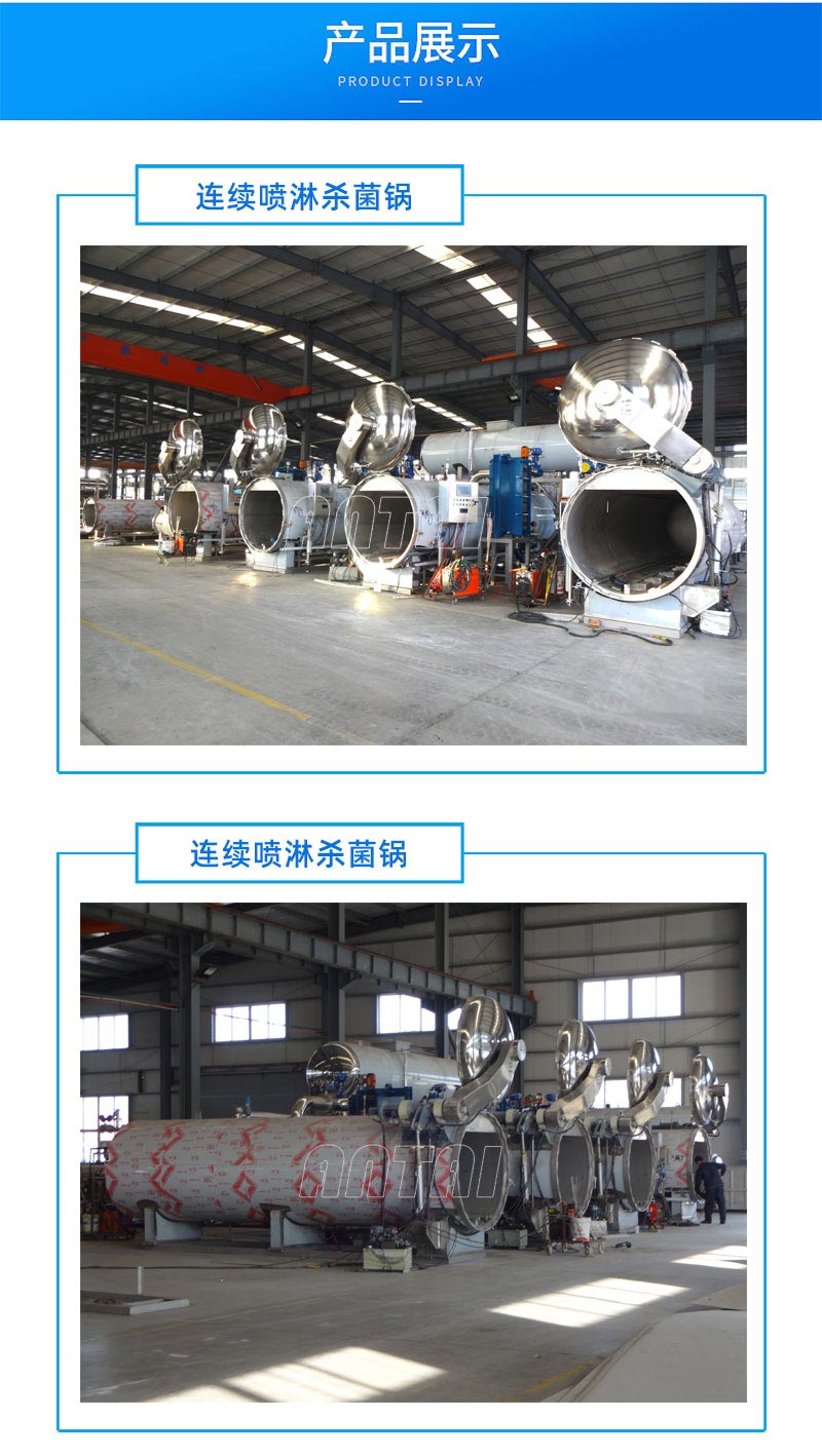 殺菌產(chǎn)品由輸送線進(jìn)入裝籠機(jī),裝籠機(jī)自動(dòng)將產(chǎn)品有序的碼放進(jìn)籠筐,籠筐輸送線自動(dòng)將滿筐產(chǎn)品送入殺菌鍋,殺菌鍋根據(jù)不同的食品加工工藝調(diào)控溫度和壓力,熱量分部均勻,壓力控制平穩(wěn),每批次產(chǎn)品殺菌效果一致;滅菌好的產(chǎn)品由籠筐輸送線送到卸籠機(jī),卸籠機(jī)自動(dòng)將產(chǎn)品從籠筐中取出,取出后的產(chǎn)品由輸送線自動(dòng)送至后包裝設(shè)備進(jìn)行檢測(cè)及包裝。
