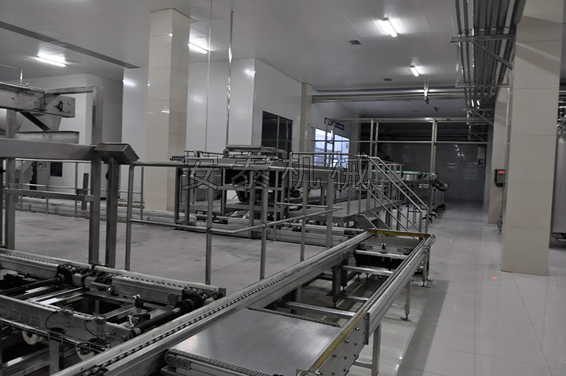 本機(jī)主要應(yīng)用于對(duì)各種罐裝飲料或罐頭等在二次殺菌后進(jìn)行自動(dòng)卸籠作業(yè)。通過推罐卸出裝置將堆棧于殺菌籠里的實(shí)罐,由上而下一層一層的推至輸送平臺(tái)上,整個(gè)卸籠過程隔層板自動(dòng)取出、自動(dòng)收集,罐層自動(dòng)上升、自動(dòng)卸罐、空籠自動(dòng)停止卸罐自動(dòng)下降,取代人工卸籠方式,節(jié)省人力,大大提高生產(chǎn)效率。