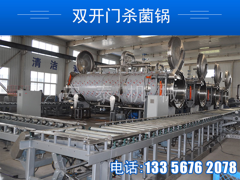 ①將灌裝好的產(chǎn)品裝籃送入滅菌釜中,釜門關閉。然后釜門通過三重安全聯(lián)鎖保證安全。在整個滅菌過程中,機械、電氣等方式連鎖,保證殺菌鍋安全運行。